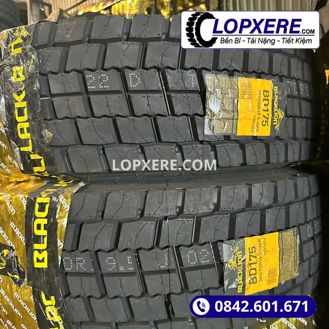 Lốp Blacklion BD175 12R22.5 là sản phẩm lốp xe cao cấp thuộc thương hiệu Blacklion. Lốp xe tải BD175 được sản xuất bởi nhà máy Jinyu và được sử dụng phổ biến cho các dòng xe tải, xe công chở hàng nặng trên quãng đường trung và dài. Vì là lốp xe gai xuôi hỗn hợp nên lốp xe tải Blacklion BD175 giúp mang lại sự êm ái và lì đòn trên suốt chặng đường. Kết cấu bố thép với 18 lớp bố giúp cho lốp xe BD175 có khả năng chịu tải khá lớn, vượt tải lên đến 220%.