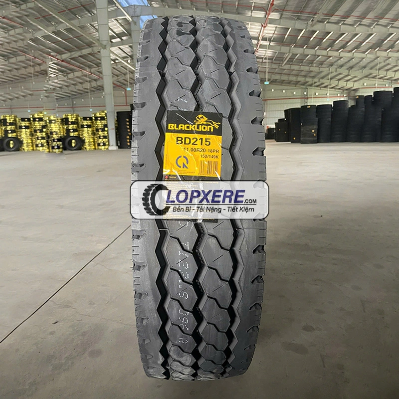 Lốp Blacklion BD215 11.00R20 là sản phẩm lốp xe cao cấp thuộc thương hiệu Blacklion. Lốp xe Blacklion BD215 11.00r20 được sản xuất bởi nhà máy Jinyu và được sử dụng phổ biến cho các dòng xe tải, xe công chở hàng khá nặng quãng đường trung và dài. Vì là lốp xe gai xuôi hỗn hợp nên lốp xe tải Blacklion BD215 11.00r20 giúp mang lại sự êm ái và lì đòn trên suốt chặng đường. Kết cấu bố thép 18PR giúp cho lốp xe đầu kéo Blacklion BD215 11.00r20 có khả năng chịu tải khá lớn nhưng vẫn êm ái, vượt tải lên đến 220%.