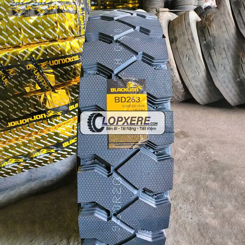Lốp Blacklion BD263 900R20 là sản phẩm lốp xe cao cấp thuộc thương hiệu Blacklion. Lốp xe Blacklion 900r20 BD263 được sản xuất bởi nhà máy Jinyu và được sử dụng phổ biến cho các dòng xe tải chạy quãng đường trung và dài. Vì là lốp xe gai bệt nên lốp xe Blacklion BD263 900r20 trở nên siêu lì, vô tư quá tải không lo phù hông lốp. Kết cấu bố thép với 18 lớp bố giúp cho lốp Blacklion 900r20 BD263 có khả năng chịu tải lớn, vượt tải lên đến 220%.