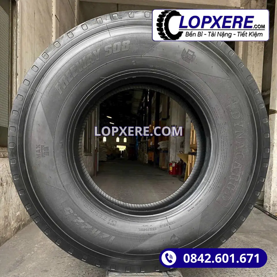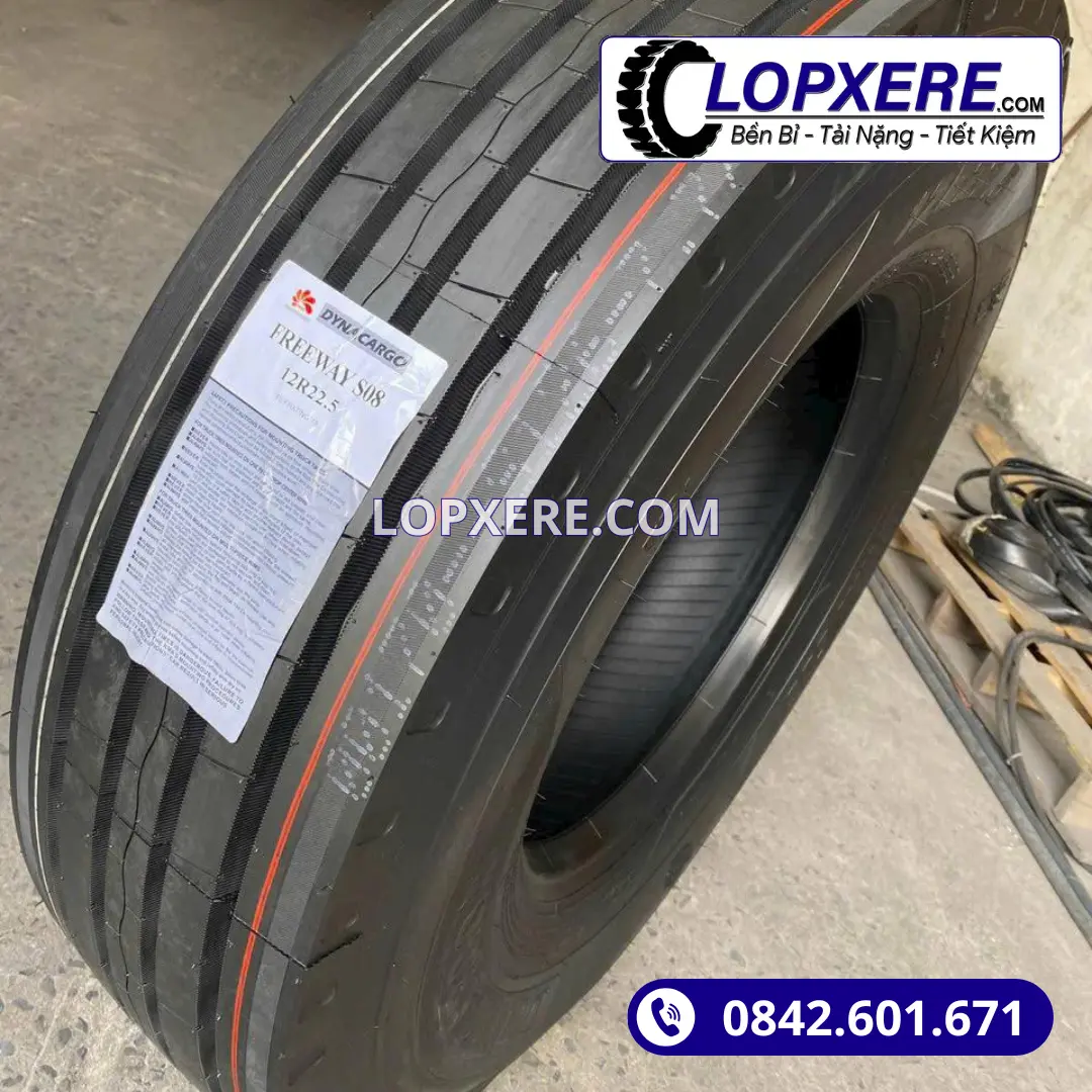 Lốp Dynacargo S08 12r22.5 là sản phẩm lốp xe cao cấp thuộc thương hiệu Dynacargo. Lốp xe Dynacargo S08 12r22.5 được sản xuất bởi nhà máy Rubber và được sử dụng phổ biến cho các dòng xe tải, xe đầu kéo chở hàng đường dài. Vì là lốp xe gai xuôi thẳng nên lốp xe đầu kéo Dynacargo S08 12r22.5 giúp mang lại sự êm ái trên suốt chặng đường. Kết cấu bố thép 18PR giúp cho lốp xe container Dynacargo S08 12r22.5 có khả năng chịu tải cực khoẻ.