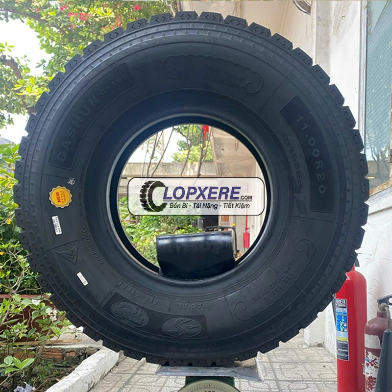 Lốp Gashun GS105 11.00R20 là sản phẩm lốp xe ben phổ thông thuộc thương hiệu Gashun. Lốp xe ben 11.00r20 GS105 được sử dụng phổ biến cho các dòng xe tải, xe ben chở hàng nặng chạy đường hỗn hợp. Vì là lốp xe ben 11r20 ngang nên lốp xe Gashun GS105 giúp mang lại sự khoẻ khoắn, lì đòn trên những cung đường xấu. Kết cấu bố thép với 18 lớp bố giúp cho lốp xe Gashun 11.00r20 GS105 có khả năng chịu tải khoẻ hơn 3,5 tấn/bánh.
