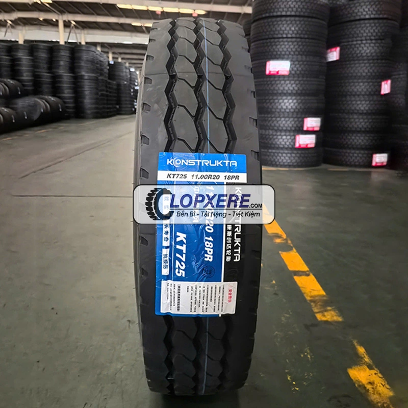 Lốp Konstrukta KT725 11.00R20 là sản phẩm lốp xe cao cấp thuộc thương hiệu Konstrukta. Lốp xe tải 11.00r20 Konstrukta KT725 được sử dụng phổ biến cho các dòng xe tải, xe công chở hàng khá nặng quãng đường trung và dài. Vì là lốp xe gai xuôi hỗn hợp nên lốp xe tải Konstrukta KT725 giúp mang lại sự êm ái và lì đòn trên suốt chặng đường. Kết cấu bố thép 18PR giúp cho lốp xe 11.00r20 Konstrukta KT725 có khả năng chịu tải khá lớn nhưng vẫn êm ái, vượt tải lên đến 150%.
