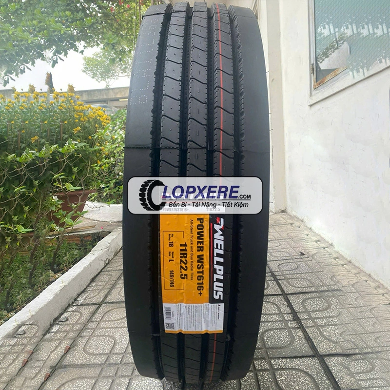 Lốp xe 11r22.5 Wellplus WST616 là sản phẩm lốp xe đầu kéo thuộc thương hiệu Wellplus. Lốp xe đầu kéo 11r22.5 WST616 được sử dụng phổ biến cho các dòng xe tải, xe container chở hàng nặng đường trường quãng trung và gần. Vì là lốp xe gai xuôi thẳng nên lốp xe container 11r22.5 Wellplus WST616 giúp mang lại sự êm ái trên suốt chặng đường. Kết cấu bố thép 18PR giúp cho lốp xe Wellplus WST616 11r22.5 có khả năng chịu tải khá lớn, tải khoẻ hơn 3,5 tấn/lốp.